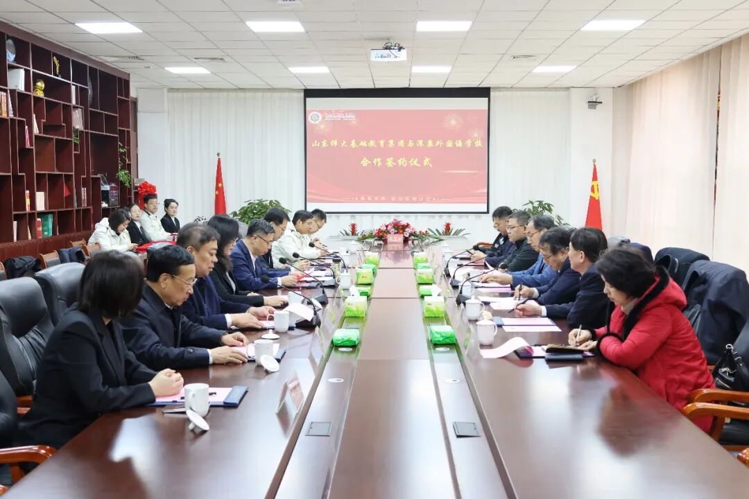 3月2日,山东师范大学基础教育集团与济南市深泉外国语学校合作办学签约仪式隆重举行。山东师范大学党委书记冯继康,山东师范大学党委副书记张茂聪,山东师范大学基础教育集团总校长苗禾鸣等山师方面领导;平阴县委书记王秀成,平阴县委办公室主任姜爱文,平阴县教育和体育局局长孙海平等地方领导;山东锦泽实业集团董事长段勇,山东深泉教育集团总校长王义君等学校负责人出席仪式,共同见证这一重要时刻。